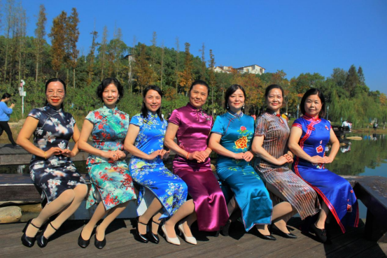 11月14日,学校教职工旗袍协会会员们在美丽的后湖公园,开展走秀活动,这是旗袍协会为庆祝建党100周年, 华服文化走秀展演活动。