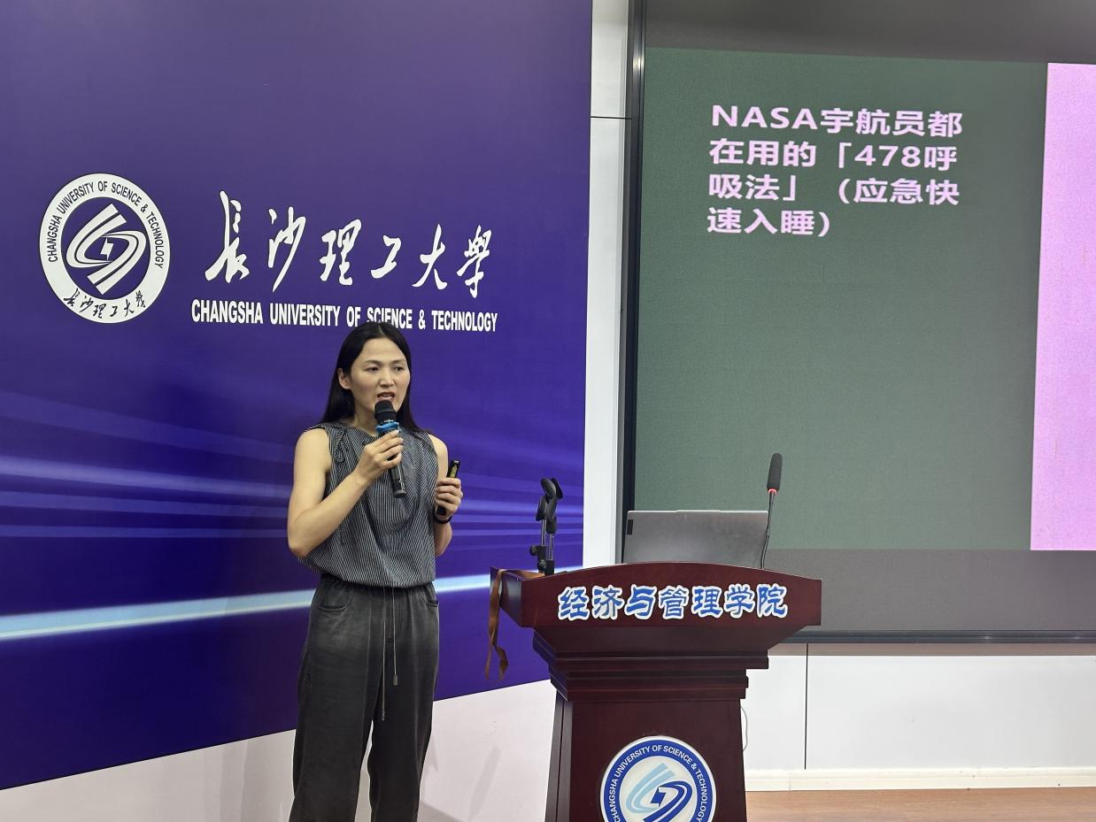 在讲座的最后环节,陈金虹还分享了多种改善睡眠质量的方法,包括睡前90分钟的“黄金升温法”、身体扫描技术以及助眠放松操。现场同学积极参与互动,跟随指导进行体验学习。