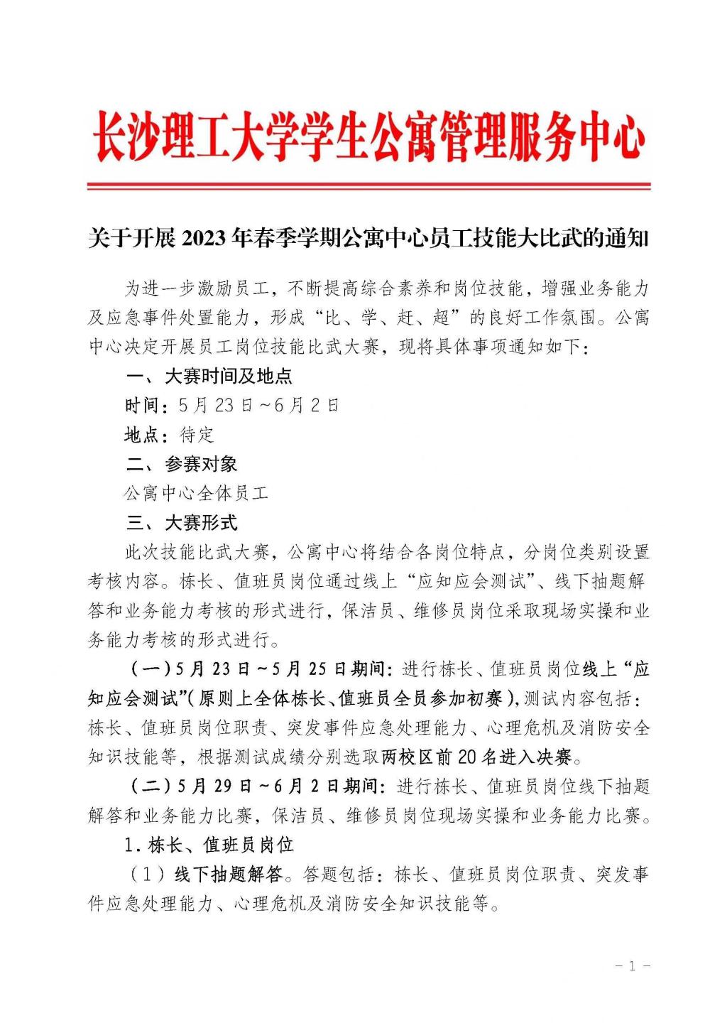 关于开展2023年春季学期公寓中心员工技能大比武的通知
