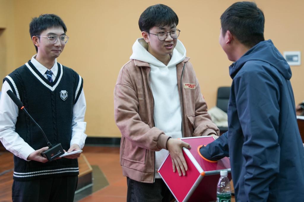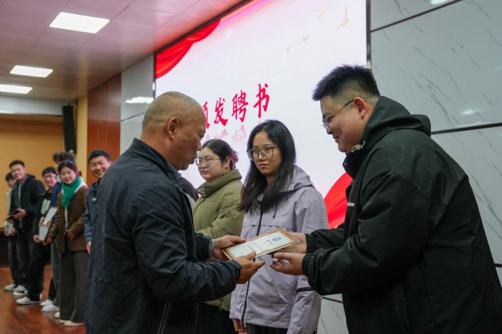 聘书颁发仪式上,龙军、朱虹老师为上一届主席团及各部门负责人依次授聘,表彰其过往辛勤付出与突出贡献。2024—2025届主席陈嘉振结合自身经历分享工作心得,寄语新一届成员传承部门优良传统,勇于创新实践,在履职中锤炼成长。