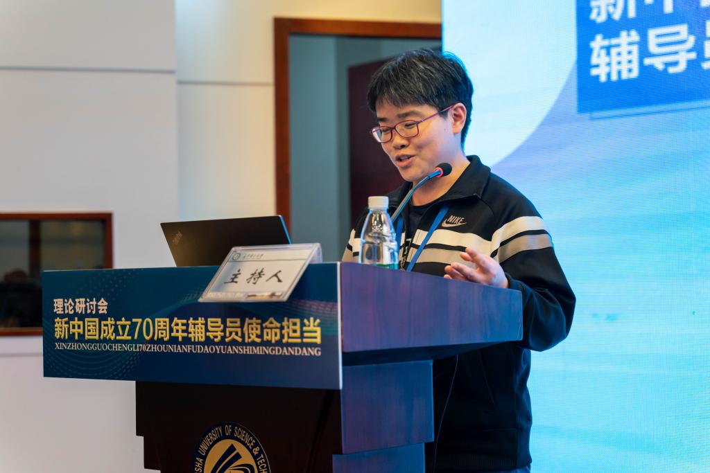 “最美辅导员”武汉大学徐冶琼、西华师范大学郑琳川、四川大学黎红友、武汉理工大学商丹、中北大学杜瑞平、我校李小军等6位辅导员在会上先后以《学生眼中的优秀辅导员——基于扎根理论的辅导员胜任力特征研究》、《高校辅导员思想政治教育话语权建设的四维路径》、《新时代高校大学生教育管理工作精细化理论构建与实践探索》、《社会网络分析视域下思想政治教育效果评估策略研究》、《辅导员践行初心使命的时代内涵与实践路径》、《高校辅导员专业化建设70年:演进逻辑与经验启示》为题做论文交流。
