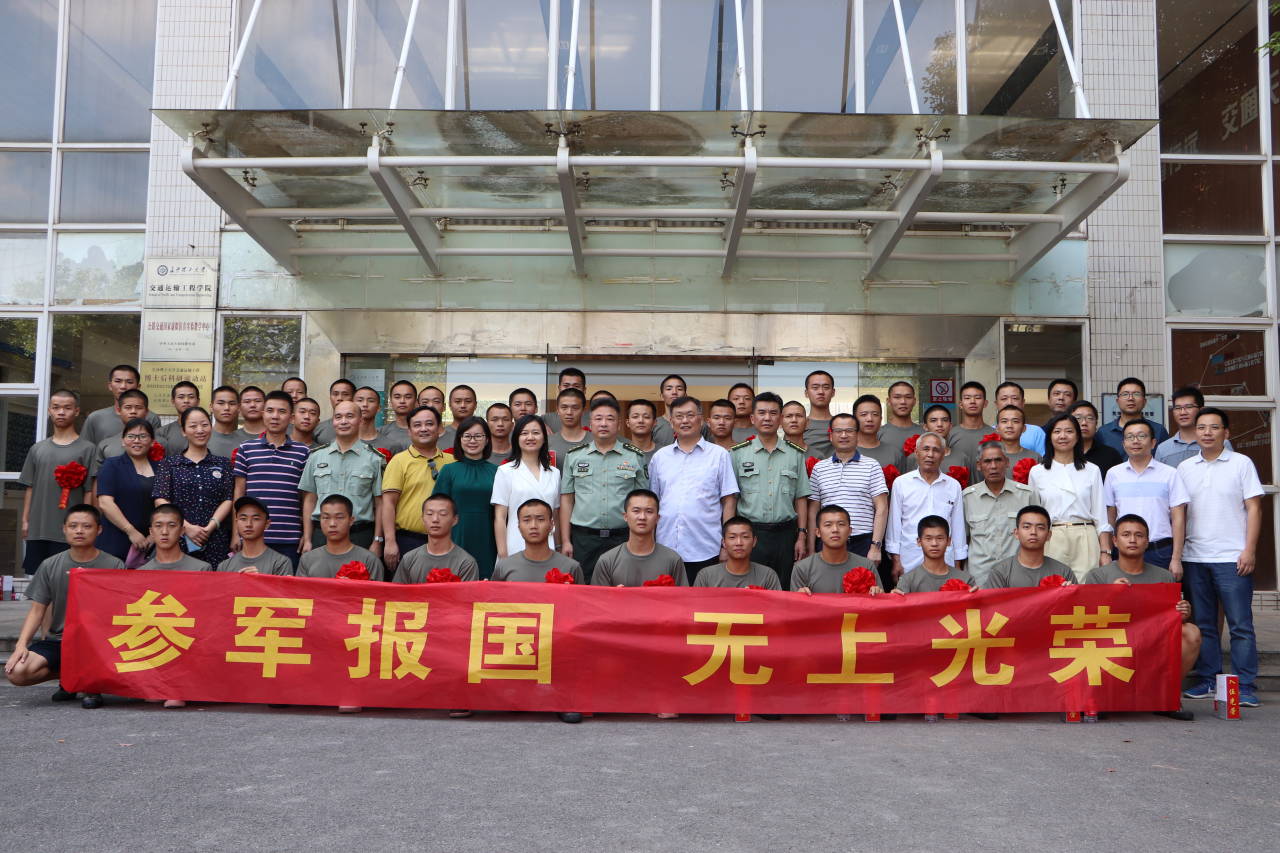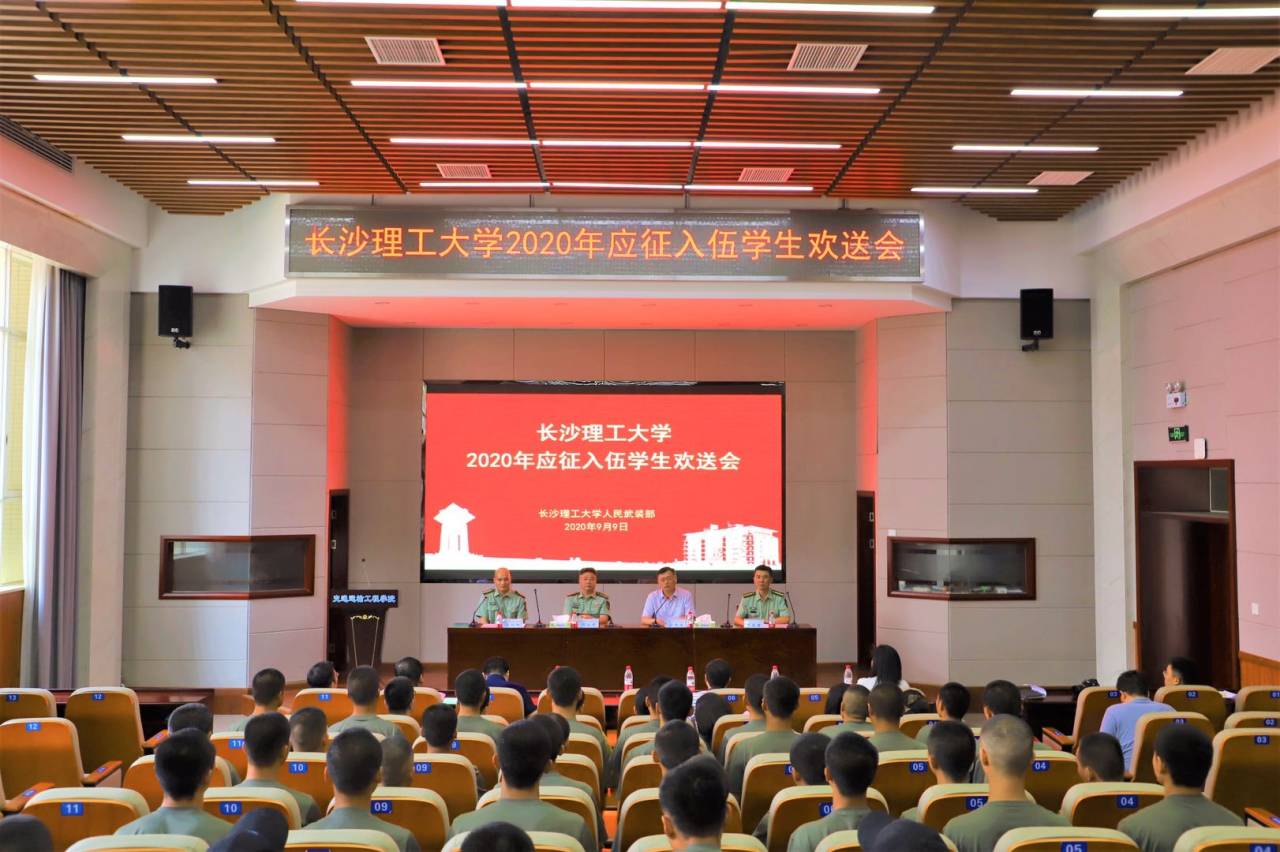 9月9日下午,我校2020年参军学生欢送会在交通学院科技报告厅隆重举行。副校长谈传生、长沙市天心区人民武装部部长周永顺,以及我校学工部、人民武装部、各院系党委副书记出席,为从天心区入伍的45名大学生送行。
