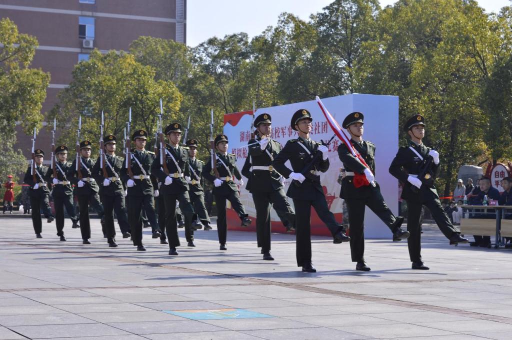 据悉,本次比赛由湖南省高等教育学会国防教育专业委员会主办,湖南大学与湖南农业大学联合承办。赛事汇聚了全省各高校军事社团的骨干力量,通过模拟枪射击、国旗护卫队风采展示、班组队列展示等多个竞赛项目,全方位检验高校学子的军事技能与团队协作能力。