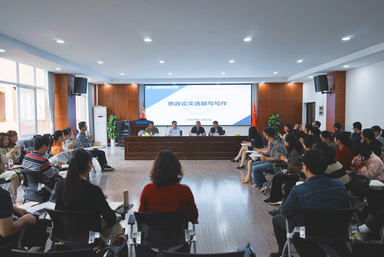 王习贤教授指出写好思政论文要把握好“六个度”,并强调了论文撰写的具体要求。他指出,写好思政论文必须把握好论文的广度、深度、厚度、高度、温度、实度。他强调,论文要做到观点明确、逻辑清晰、行文流畅,表达严谨,这样方能凸显论文的学术价值。余乃忠教授就“怎样写好一篇优秀的学术论文”分享了自己多年从事思政教育和科研工作的经验,指出当前辅导员在进行论文写作面临的问题,提出了论文写作要架好五大支柱,即做好“高屋建瓴”的旧文总结、“不疑处有疑”的问题发现、收放自如的逻辑展开、含而不露的价值意义、层次分明的结构安排。陈浩凯教授围绕“如何做好论文选题”发表讲话。他认为,一个有科研价值的论文主题,既要在日常学生工作中发现问题,又要不断通过工作实践加强学习和思考,从而达到理论实践的双向提升,促进学生工作的科学化发展。艾楚君部长结合我校学生工作现状,提出要加强辅导员专业化、职业化建设,并建议辅导员在论文撰写和课题申报过程中积极关注国家战略需求、学科前沿动态、前人研究成果以及自身研究基础,充分发挥在基层一线的学生工作优势,多体验、多挖掘、多思考、多凝练,为学生工作科学化提供支撑。与会人员还就论文选题、发表以及文献阅读等话题进行了深度交流。