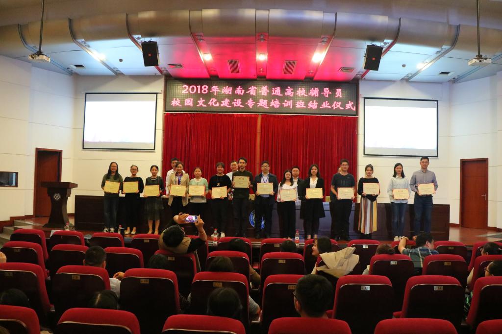 10月12日下午,2018年湖南省普通高校辅导员校园文化建设专题培训班结业仪式在云塘校区图书馆报告厅举行,副校长谈传生,省委教育工委宣传部副调研员崔恒源参加。结业仪式由我校学工部(处)部(处)长艾楚君主持。