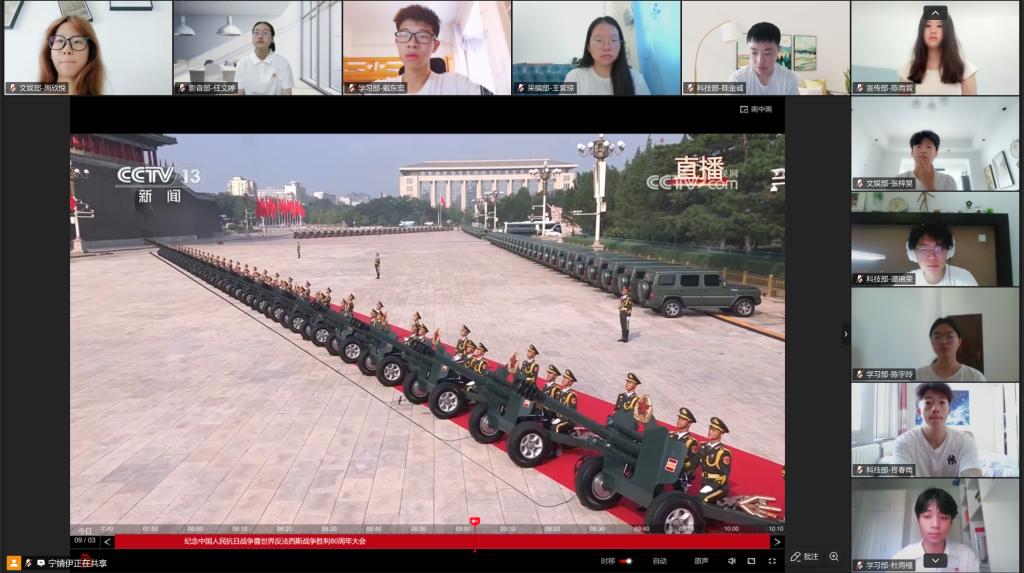 2025年9月3日上午,纪念中国人民抗日战争暨世界反法西斯战争胜利80周年大会在北京天安门广场隆重举行。我校团委、学生会组织全体成员线上集中观看了在北京天安门广场举行的盛大阅兵仪式直播。