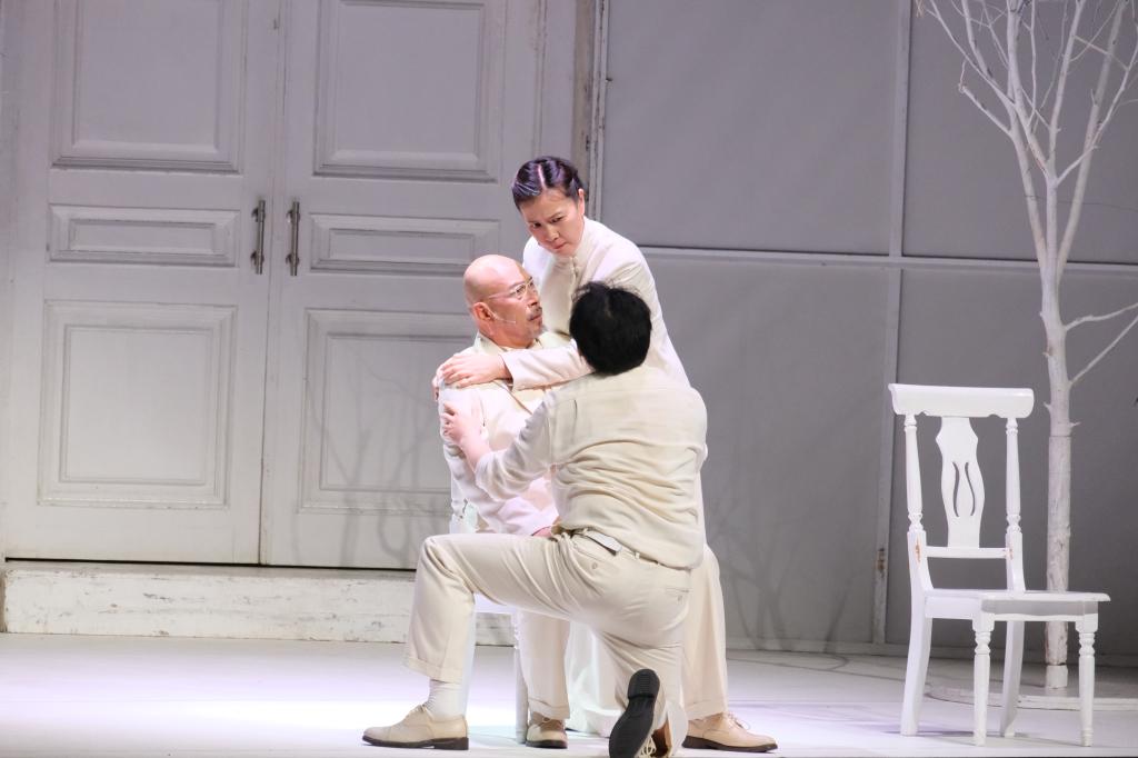剧中简约而富有象征意义的舞台设计,通过光影变化与空间调度,成功营造出跨越时空的对话场景。三个灵魂在虚实交织的空间中反复追问,当剧情触及“科学的边界”与“伦理的重量”时,不少师生陷入深思;剧中人物对真理的坚守与对自我的叩问,引发了在场观众的强烈共鸣,使观众仿佛置身于1941年那个影响世界科学进程的历史现场,切身感受理性与情感、个人命运与人类前途的激烈碰撞。