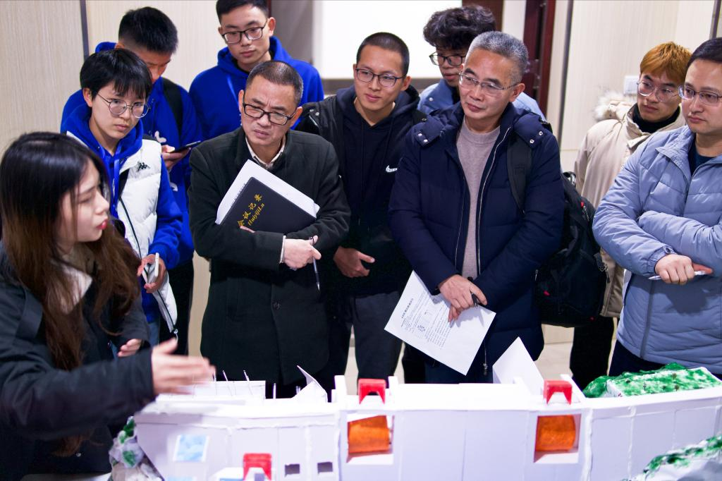 本次决赛分为路演讲解、现场答辩两个环节。在路演环节中,参赛选手分为三组分别在工科三号楼A307,B319,A201三个展区进行比拼,从组员介绍、制作过程、创意点展示、运行原理等方面向评委进行介绍。各具想法的模型、各具特色的ppt、各具风格的演讲成为本赛事的亮点。专业老师则围绕作品创新性、实用性对选手进行提问,活跃赛场气氛。路演结束后,三个展区的前三名队伍在工科三号楼A307进行终极对决。9个终极对决项目通过ppt展示与现场答辩等形式进行,全方位的展示了作品的优势与特点。