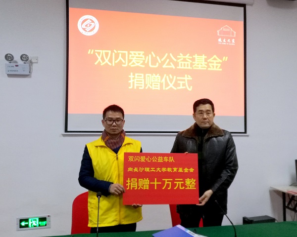 李明是我校城南学院机电一体化2011届毕业生,2016年创建湖南经纬视听文化传播有限公司,2017年被推选为双闪志愿者爱心车队长沙支队队长,多年来,一直带领公司员工加入、组织宣传公益事业。此次,李明以双闪志愿者爱心车队长沙支队名义向我校教育基金会捐赠十万元,发起设立“双闪爱心公益基金”,主要用于资助我校成绩优良、热爱并参与公益事业、积极传播校友文化,愿为社会公益事业奉献的贫困学生。