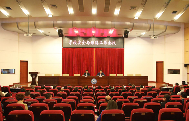 34,学校安全与维稳工作会议在云塘校区图书馆报告厅召开,校领导,各单位党政主要负责人参加会议,副校长蒋昌波主持会议。