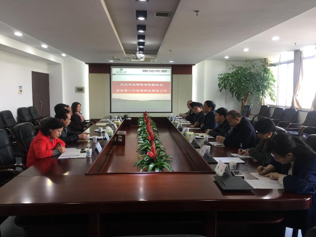 3月23日上午,邵阳学院副校长曾阳素一行7人来我校调研。副校长叶泽,教务处处长刘朝晖、副处长蒋菲、校教学督导团团长高纯一等出席了调研座谈会。座谈会由叶泽主持。