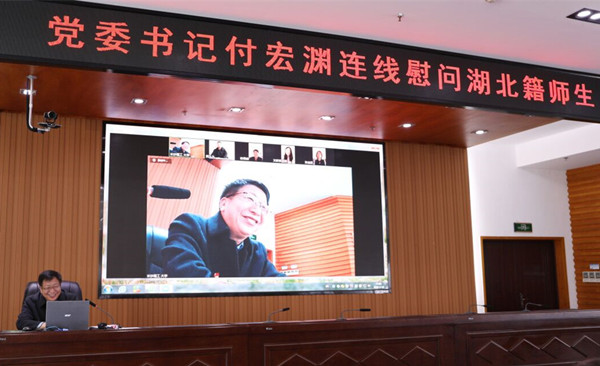 付宏渊说,新型冠状病毒肺炎疫情发生以来,在以习近平同志为核心的党中央坚强领导下,疫情得到有效控制,充分体现了中国特色社会主义制度的优越性,让我们更加增强了“四个意识”、坚定了“四个自信”、明确了做到“两个维护”的重要性。他希望师生们一定要按照当地政府的要求,做好疫情防控;也希望大家坚定信心和决心,有困难及时跟学校联系,表示学校是大家坚强的后盾。