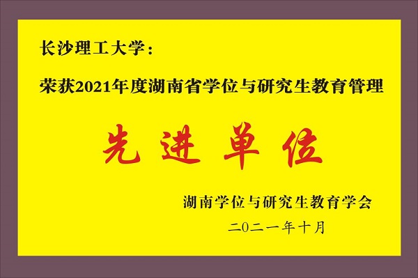 11月29日,经湖南学位与研究生教育学会2021年第一次常务理事会评选,我校荣获2021年度“湖南省学位与研究生教育管理先进单位”,研究生院刘碧莲、汽车与机械工程学院陈娅玲、水利与环境工程学院刘范红、数学与统计学院黄洪等四名老师被评为2021年度“湖南省学位与研究生教育管理先进个人”。