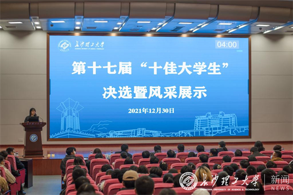 第十七届“十佳大学生”评选活动于2021年10月份启动,分初选审核、师生投票、决选展示三个阶段。在初选阶段,经学院推荐和个人申报,共有42人进入资格审查环节。经过评选办公室资格审查和学校评选委员会初步评选,产生了17位正式候选人。候选人的先进事迹在学工部官方微信公众号“长理学贝”以及校园内展板同步推出后,学校组织全校师生参与线上投票,“长理学贝”网络投票通道同步开通,累计阅读量达3.2万人次。在决选暨风采展示环节,17位候选人通过PPT、视频和自我讲述,依次展示和分享了个人先进事迹和成长经历,评委根据候选人的先进事迹和现场展示情况进行评分。根据网络投票得分和现场决选展示得分,蒋利杨等10名同学获评“十佳大学生”,梁江等7名同学获得“十佳大学生” 提名奖。