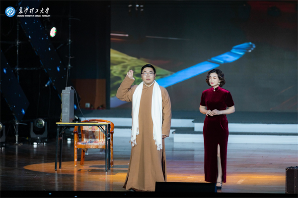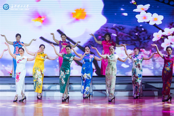第二篇章---《长理潮涌》创业图,旗袍秀《国韵芳华》、情景剧《永不消逝的电波》尽显长理人的多才多艺;一曲湘韵湘情的长沙弹词《长理神韵》以传统艺术形式演绎长理文化,讲述我校的发展建设成就。