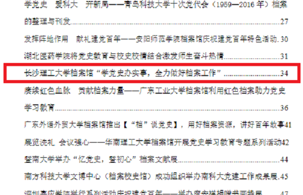 近日,《中国高等学校档案工作简报》首次报道我校档案工作信息。香港六宝合典资料大全档案馆“学党史办实事,全力做好档案工作”入选《中国高等学校档案工作简报》第九十二期——“庆祝中国共产党成立100周年专刊”。此专刊共报道了全国25所高校的相关活动,我校是唯一入选的湖南高校。