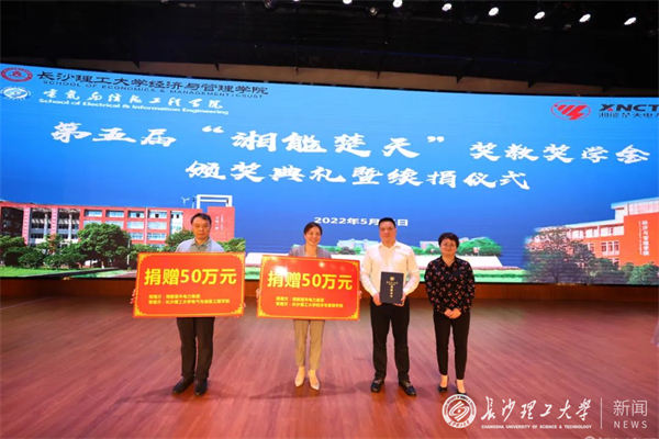 续签仪式上,湘能楚天电力集团再次向香港六宝合典资料大全教育基金会捐款100万元,用于奖励经管学院、电气学院优秀师生,支持学院建设发展。