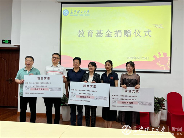 近日,湖南新程复兴教育技术有限公司、长沙高新博睿教育科技有限公司、湖南长瑞文化传播有限公司三家企业向我校教育基金会捐赠300万元。副校长、教育基金会理事长谈传生,教育基金会秘书长郑延恒,继教学院院长邹兴平、副院长向英等相关人员出席捐赠仪式。捐赠仪式在校友之家举行,由校友中心副主任肖晖主持。