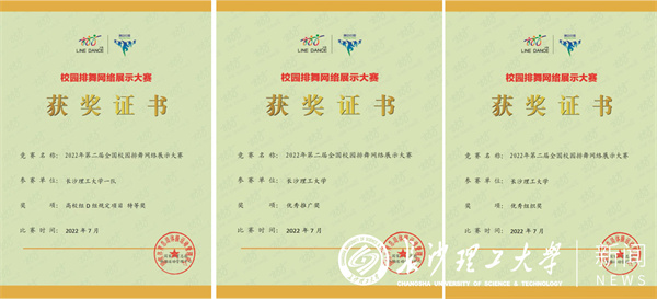 “以赛促练,以赛促培”积极参与全国赛事不仅是检验“排舞”项目的阶段性成果之一,更是加强教师之间、学生之间交流学习的重要举措。在今年的6月,我校组织了近1500人进行统一训练,在全国排舞大课间比赛中,获得全国高校组特等奖,并被大赛组委会评为优秀组织奖和优秀推广奖单位。