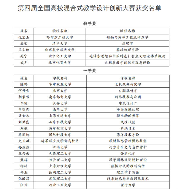 近日,第四届全国高校混合式教学设计创新大赛组委会公布了获奖名单,我校建筑学院熊辉老师的《风景园林规划设计理论》课程在决赛中脱颖而出,获得一等奖,交通学院魏隽君老师的《现代物流学》课程和邢学敏老师的《测量学A》课程获得“设计之星”奖。