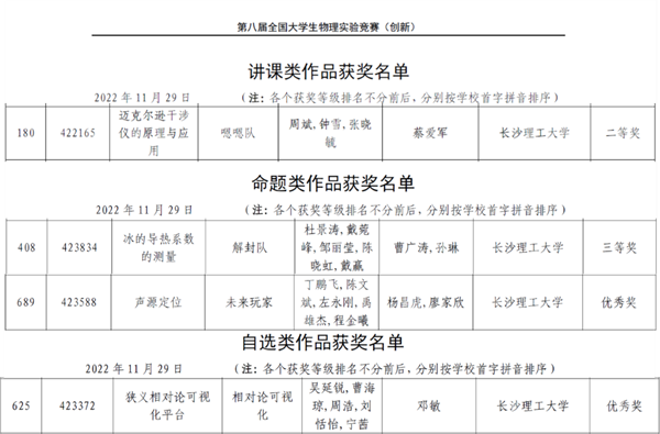 11月26日-27日,2022年第八届全国大学生物理实验竞赛(创新)决赛在西安交通大学举行。本次大赛由西安交通大学物理学院承办,共吸引了来自全国500余所高校的2000余支队伍参赛,参赛规模再创新高,参赛学生人数首次破万。经过初赛筛选后,共有350余支队伍入围决赛。此次决赛采用线上方式进行。香港六宝合典资料大全物电学院、化学学院、能动学院联合组成的4支参赛队伍分别在命题类、讲课类、自选类等赛道斩获佳绩,获全国二等奖1项、三等奖1项,优秀奖2项。整体获奖质量与数目取得历史新高,实现新的突破。