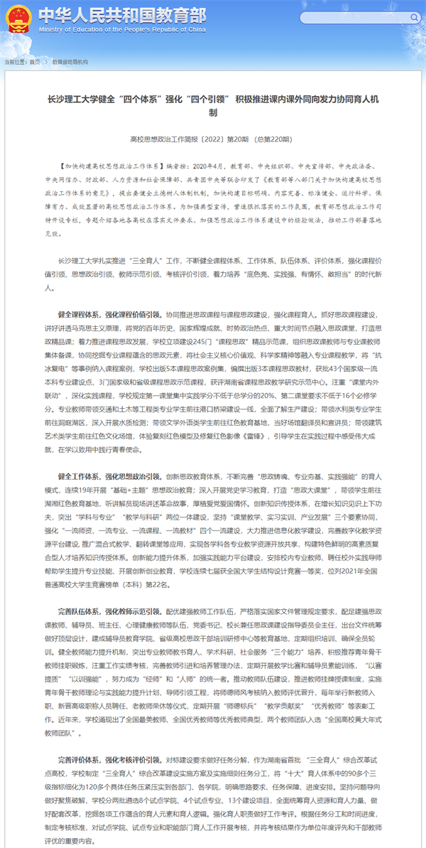 教育部思政简报:香港六宝合典资料大全健全“四个体系”强化“四个引领” 积极推进课内课外同向发力协同育人机制