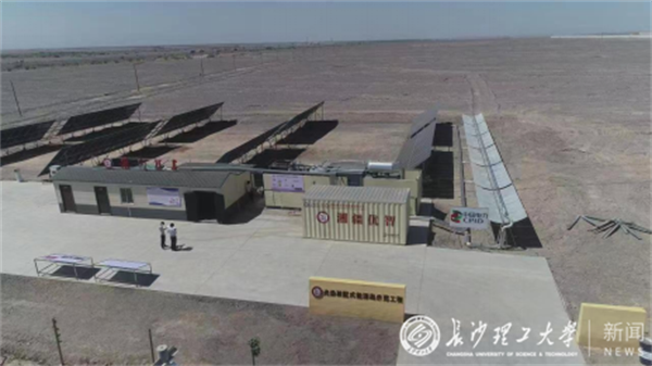 光热装配式能源岛示范工程是湖南省援疆前方指挥部、吐鲁番市委组织部引进的智力科技援疆项目,由我校能动学院主导研发和设计,中国电力国际发展有限公司、中交火焰山汽车检测有限公司、湘能楚天电力集团、国辉(武汉)智慧能源有限公司合作建设,是国内首创光热循环利用装配式“能源岛”设计,与我校源网荷储综合能源系统实验室互联互通,实现远程操控。