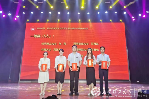 为深入贯彻落实习近平新时代中国特色社会主义思想,全面贯彻党的二十大精神,进一步推动全省高校落实立德树人根本任务,5月22至25日,湖南省第一届高校辅导员综合育人能力提升示范观摩活动在湖南农业大学举行。我校水利与环境工程学院辅导员陈鑫林获特等奖(共3个)、法学院辅导员刘阳获一等奖(共5个)。