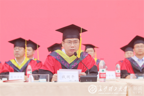 曹一家向圆满完成学业、即将开启人生新篇章的6755 名本科生、2477名研究生表示热烈祝贺,向悉心培育学生成长成才的父母、师长致以衷心感谢和崇高敬意。他指出,这些年,广大学生与国家共同发展,与学校共同进步,亲历着学校核心竞争力快速跃升,全体长理人“一起过、一起干”,正在加速形成“四个基地”、锻造“四种力量”,决胜建成“百强”大学胜利在望;同学们与梦想共同成长,践行着“强国有我,请党放心”的青春誓言,生动诠释着“底色亮、实践强、有情怀、敢担当”。他嘱咐同学们,国家的需要就是青春奋斗的方向,并对同学们提出三点希望:一是守正创新,在新时代中砥砺报国之志,到祖国和人民最需要的地方服务、奉献;二是永久奋斗,在新征程中担当复兴大任,书写无愧于时代的壮丽篇章;三是执着坚定,坚守内心的光明和纯粹,在新天地中奋力创造辉煌。