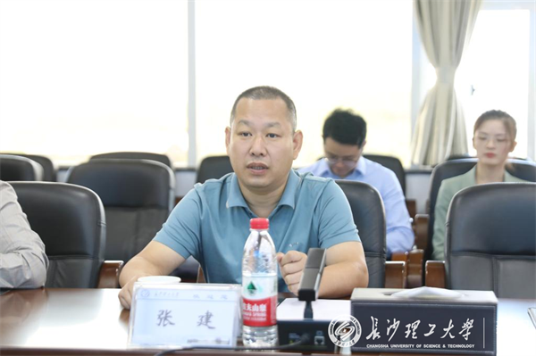 谈传生对张建一行来校表示欢迎,介绍了学校学科优势、校友企业及科技成果转化等有关情况。他表示,学校是天心区的属地高校,助力地方经济社会发展是学校的责任。他希望校地双方本着务实的态度,全方位开展合作,根据地方在产业发展、人才资源、科技创新、项目建设等方面的实际需求,充分发挥学校人才优势,从校友企业落地、教育品牌打造等多个方面全面深化合作交流,助力区域高质量发展。