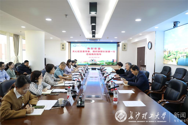 10月11日上午,长沙市天心区区委常委、组织部部长张建率区委组织部、区教育局、区科技局、区工信局、区商务局、天心经开区组织人才局、天心经开区产业发展局等有关单位负责人一行来学校洽谈合作。双方就集聚人才资源、强化校地合作进行深入交流。副校长谈传生出席座谈会。科技处、校友中心等有关部门主要负责人参会。
