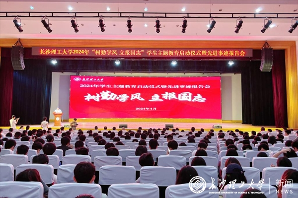 4月24日晚,我校2024年“树勤学风 立报国志”学生主题教育启动仪式暨先进事迹报告会在金盆岭校区五教大礼堂举行。副校长钱国平,相关部门负责人,各学院学生工作负责人、辅导员和学生代表参加了启动仪式。