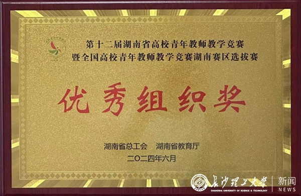 弘扬教育家精神,争做新时代大先生。6月24日,由湖南省总工会、湖南省教育厅主办的第十二届湖南省高校青教赛暨全国高校青教赛湖南赛区选拔赛在湖南中医药大学落下帷幕。经过层层角逐,我校电气学院李灵荣获工科组一等奖,数统学院赵勇荣获理科组一等奖,交通学院李希荣获工科组二等奖,马克思主义学院胡靖荣获思政课组二等奖,我校荣获“优秀组织奖”称号。