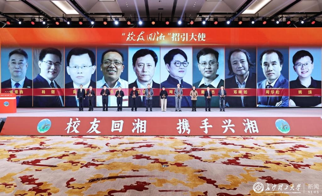我校校长蒋昌波以及7位回湘校友企业家代表受邀参会。大会发布了2025年度“校友回湘”成果榜单,我校各项榜单均居前列。其中,科研转化成果榜位列全省第三,招商引资成果榜位列全省第五,招才引智成果榜位列全省第九,充分彰显了长理校友积极响应号召、回湘投资兴业、助力家乡发展的积极作为与扎实贡献。会上,我校2009级电气专业校友、金盘新能源(湖南)有限公司副总经理杨锴荣获2025年度“校友回湘”招引大使称号。