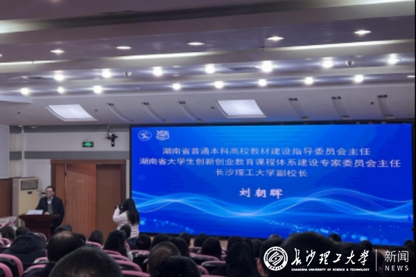 湖南省普通本科高校教材建设指导委员会、湖南省大学生创新创业教育课程体系建设专家委员会主任,我校副校长刘朝晖,省教育厅学生处负责人、就业指导中心负责人等领导出席会议并讲话。