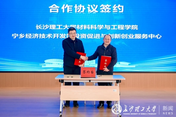 我校材料科学与工程学院与宁乡经济技术开发区投资促进与创业服务中心签署合作协议,进一步拓展校地协同创新空间,为科技成果转化和产业协同发展注入新动能。