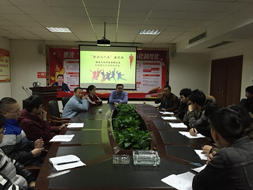 12月29日晚,湖南天欣科技有限公司与我校材料学院于公司会议室召开“职业与人生”座谈会,在此实习的无机非金属材料工程专业2014级44名学生参加。