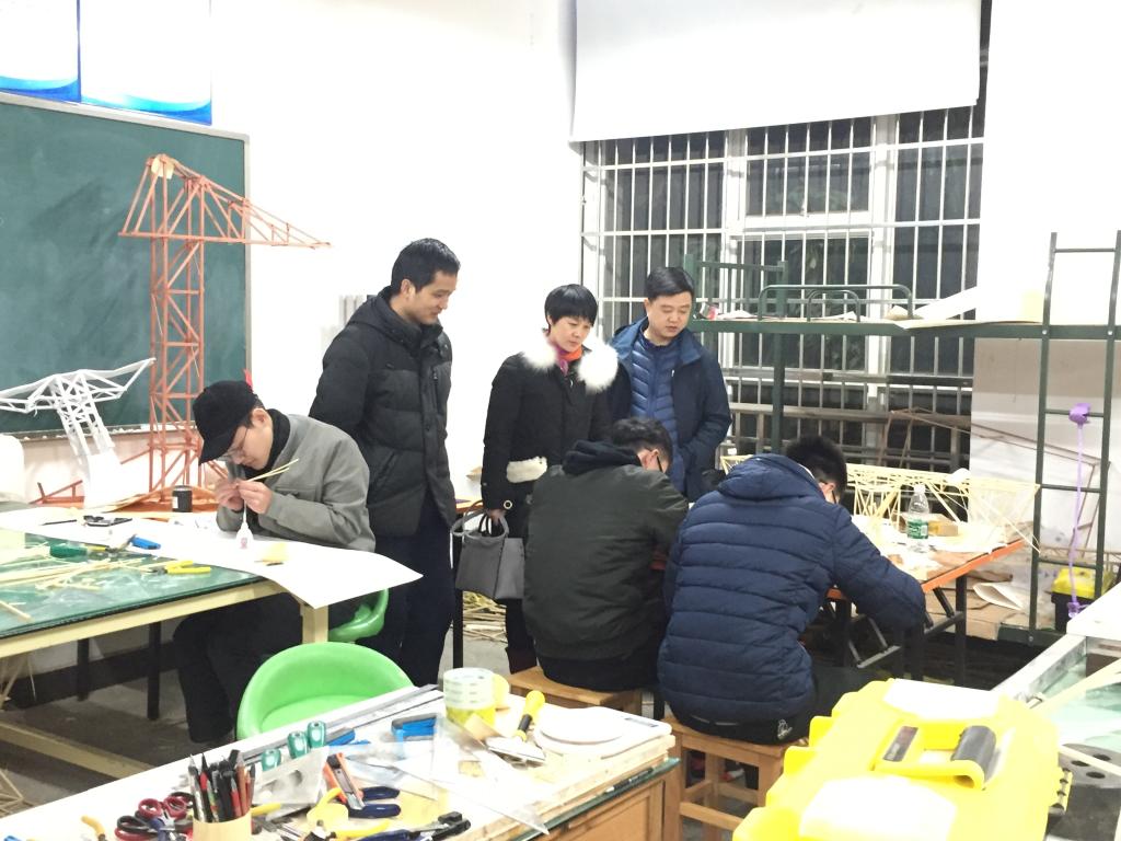 在工科二号楼A区205,几名学生正在为今年的湖南省结构设计大赛省赛做准备,他们在指导老师付果的带领下,正在一丝不苟地做模型,付果老师介绍,结构设计大赛实验室完全根据学生的需求开放,只要学生愿意,哪怕是到春节,他也可以陪同学生做模型,对学生的留校安全,他也会经常强调和随时关注。随后,老师们走访了部分学生宿舍,在了解学生宿舍生活中存在的困难和返家安排的情况后,又仔细交待了学生宿舍的安全注意事项,特别是用电安全事宜。