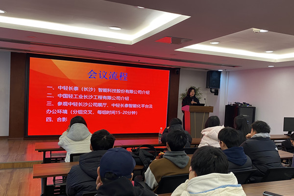 为加强学生专业认知,搭建校企沟通桥梁,1月9日,化学与医药工程学院组织2025级轻化工程专业本科生,前往中国轻工业长沙工程有限公司和中轻长泰(长沙)智能科技股份有限公司开展访企拓岗暨“三湘名企行”实践活动。