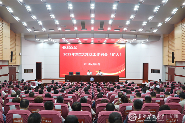 4月25日上午,我校在云塘校区图书馆报告厅召开2022年春季学期第二次党政工作例会(扩大)。校党委书记付宏渊传达赵乐际同志来湘调研重要讲话精神,以及王双全同志在全省纪检监察系统专题视频会议上的讲话精神。校党委副书记、校长曹一家主持会议并部署了下一阶段重点工作。全体校领导,全校副处级及以上干部参加会议。
