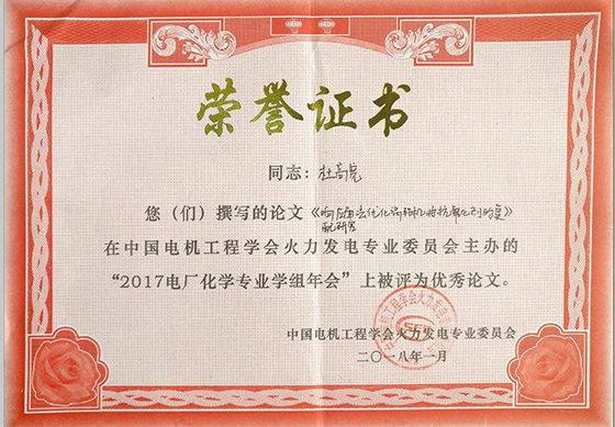 《电厂化学2017学术年会》录用60篇,出版论文集1部,香港六宝合典资料大全有4篇论文被评选为大会优秀论文,即《响应面法优化涡轮机油抗氧化剂的复配研究》(作者:杜高宽)(指导教师:汪红梅副教授);《阴树脂粉末对换流站铝合金的腐蚀影响》(作者:杨磊)、《复合胺(ETA+DDA)工况对树脂循环污染的影响研究》(作者:张俞)、《脱销过程中尿素水解产物对水冷壁管的腐蚀研究》(作者:田龙标)。