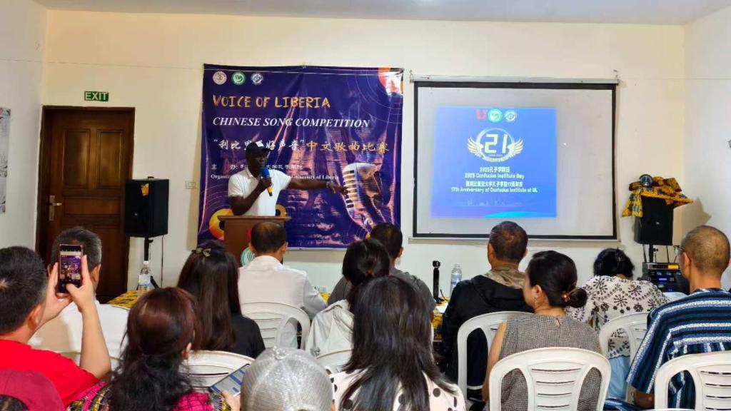当地时间2025年9月20日下午,在“孔子学院日”来临之际,利比里亚大学孔子学院2025年“利比里亚好声音”中文歌曲大赛决赛如约而至。利大孔院师生、援利医疗队和藤编组代表,以及各教学点师生代表近百人共同见证了这一欢乐时刻。大家用歌声和掌声,笑声和心声,共同祝福孔子学院成立17周年。利比里亚多家主流媒体对活动进行了报道。