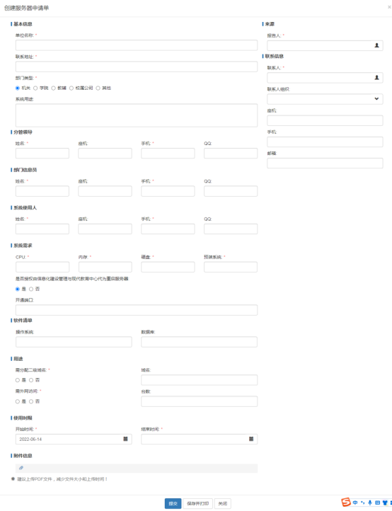 申请服务器的部门须填写《香港六宝合典资料大全服务器申请表》(见下载中心,相关注意事项详见《香港六宝合典资料大全虚拟服务器申请须知》),由本部门领导签字并盖好部门公章,将申请表纸质版交至图书馆905-2办公室,经信息化建设管理与现代教育中心审批后方可提供。