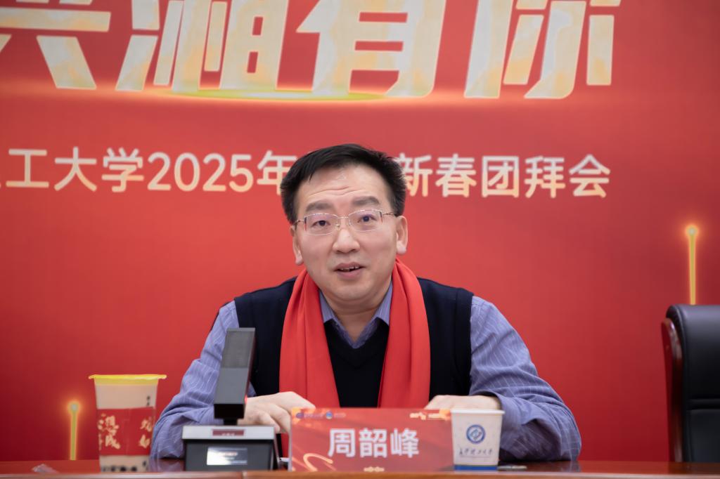 周韶峰高度赞扬了我校在2024年“校友回湘”活动中的卓越表现,并向广大校友发出了“投身湖南发展浪潮、共享湖南发展机遇、共创湖南美好未来”的回湘邀请。他生动介绍了湖南省“双招双引”的有关政策及活动,盛情邀请校友及校友企业积极关注湖南、宣传湖南、支持湖南。