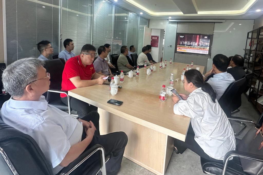 当天上午,谈传生一行来到校友企业中新凯瑞工程咨询有限公司,组织校友一同收看纪念中国人民抗日战争暨世界反法西斯战争胜利80周年大会直播。