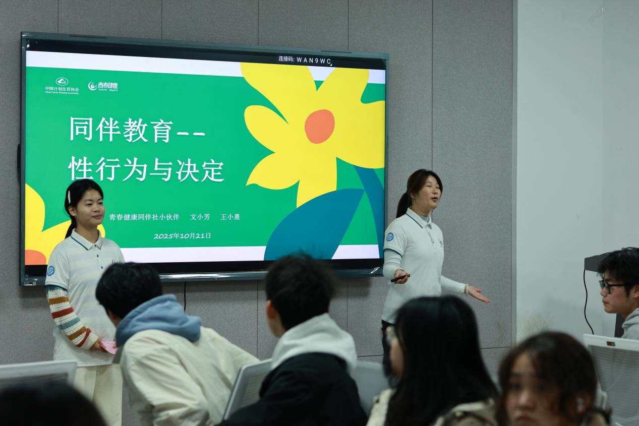 2025年10月21日下午,我校青春健康同伴社为计算机学院的同学们带来了一场关于“性行为与决定”与“预防性骚扰”的同伴教育活动。此次活动旨在引导同学们在学会为爱负责的同时,也坚定捍卫个人尊严与边界。