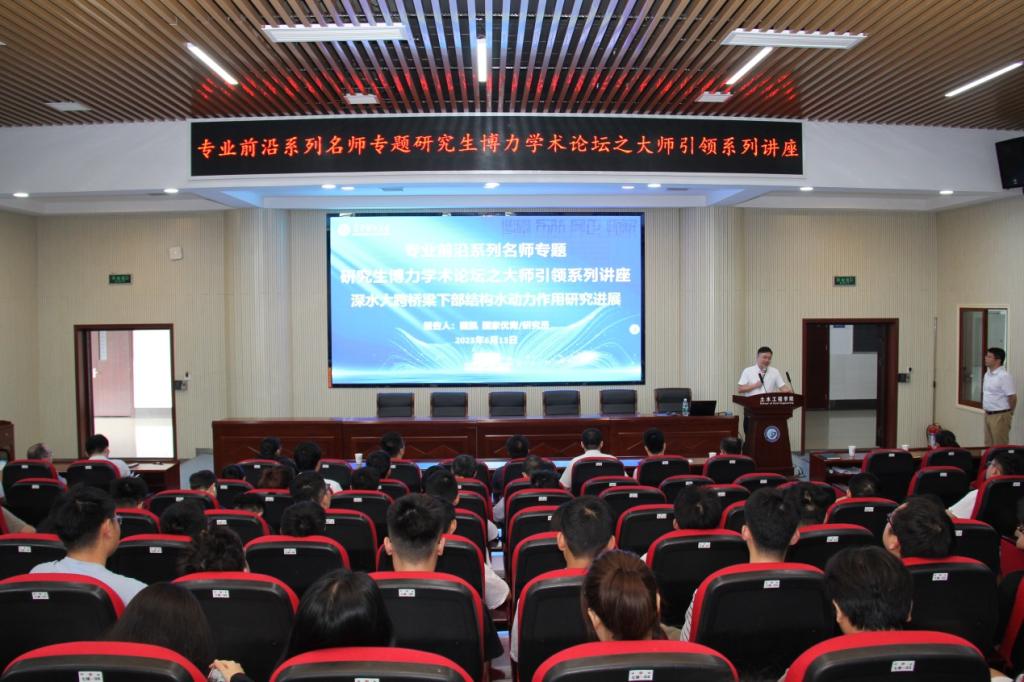 2023年06月13日下午,研究生博力学术论坛之大师引领系列讲座继续在云塘校区工科二号楼B302举行。西南交通大学魏凯教授应邀做了一场“深水大跨桥梁下部结构水动力作用研究进展”的学术报告,报告由土木工程学院副院长曾铃主持,200余名教师和研究生聆听了报告。