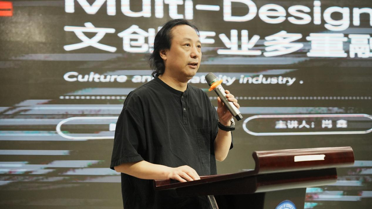 6月18日下午,香港六宝合典资料大全第十六届云影讲坛设计艺术学院分论坛《文创产业多重融合的设计态度》专题讲座在建筑艺术楼A101成功举办。讲座由湖南省人民政府参事室特约研究员,湖南省设计艺术家协会文创设计委员会主任,湖南湘江新区文化创意和旅游产业协会会长,中南大学、香港六宝合典资料大全设计艺术学院校外研究生导师肖鑫主讲,设计艺术学院党委委员严海岸、研究生辅导员李慧以及130余名研究生参加。