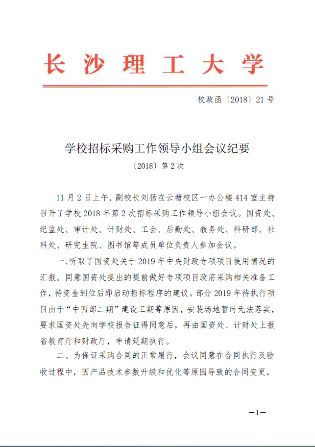 学校招标采购工作领导小组会议纪要[2018]第2次