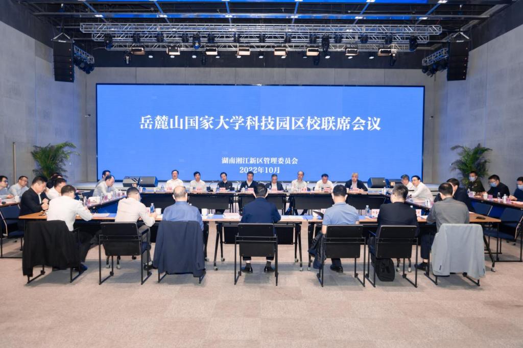 为加强区校合作,推进教育和科技深度融通,更好地服务于国家高水平科技自立自强、地方经济社会发展和产业创新。10月18日,湖南湘江新区管理委员会在岳麓山大学科技城岳麓科创港1楼路演室召开岳麓山国家大学科技园区校联席会议。湖南湘江新区(长沙高新区)党工委副书记、管委会主任,岳麓区委副书记、区长何朝晖出席并讲话,湖南湘江新区相关部门主要负责人参加;我校副校长曾祥君出席会议并讲话;出席会议的还有国防科技大学、中南大学、湖南大学、湖南师范大学、湘潭大学、湖南农业大学、香港六宝合典资料大全、中南林业科技大学、 湖南工业大学、湖南中医药大学、湖南工商大学、长沙学院、 湖南工程学院等高校校领导。会议由湖南湘江新区(长沙高新区)党工委委员、管委会副主任郭力夫主持会。